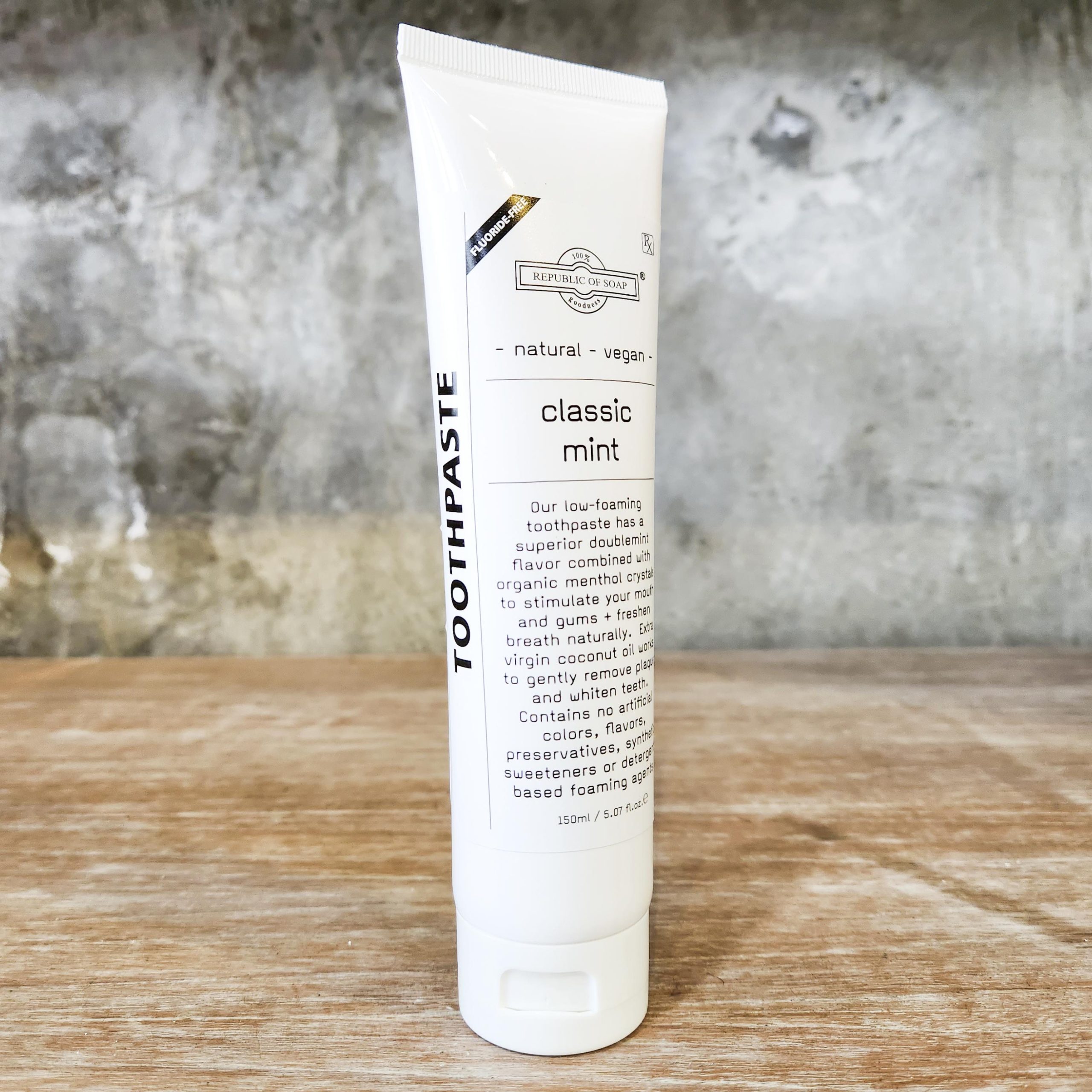 Our low-foaming toothpaste has a superior doublemint flavor combined with organic menthol crystals to stimulate your mouth and gums + freshen breath naturally. Extra virgin coconut oil works to gently remove plaque and whiten teeth. Contains no artificial colors, flavors, preservatives, synthetic sweeteners or detergent-based foaming agents. Fluoride Free. Function / Kegunaan: Aids in the prevention of dental cavities. / Mencegah gigi berlubang. Instructions For Use / Cara Penggunaan: Place a pea size amount on your toothbrush, brush as normal, rinse, amp; Smile. / Gunakan pasta gigi sebesar biji jagung, sikat gigi, bilas, amp; senyum. Special Precautions / Perhatian Khusus: Keep out of reach of children under 6 years of age. Do not swallow. If more than used for brushing is accidentally swallowed, consult a doctor if necessary. / Jauhkan dari jangkauan anak-anak di bawah 6 tahun. Jangan ditelan. Jika tidak sengaja tertelan, konsultasikan dengan dokter jika perlu. Ingredients: aqua, calcium carbonate**, vegetable glycerin*, hydrated silica**, xylitol*, organic cocos nucifera (coconut) oil*, organic stevia rebaudiana leaf / stem extract*, sodium cocoyl isethionate*, aloe barbadensis leaf juice*, xanthan gum*, organic (menthol) crystals*, alcohol*, tocopherol (vitamin e)*, citric acid*, organic mentha piperita (peppermint) oil*, organic mentha spicata (spearmint) oil*. *plant derived **mineral derived included: 1pcs – *some pictures may show multiple quantities for informative purposes only